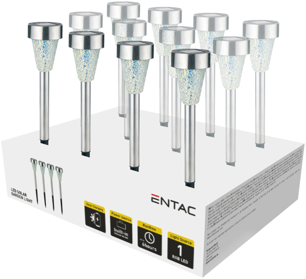 Entac Kerti Szolár Lámpa 400mm Rozsdamentes acél Mozaik Üveg 1 LED 12/kínáló