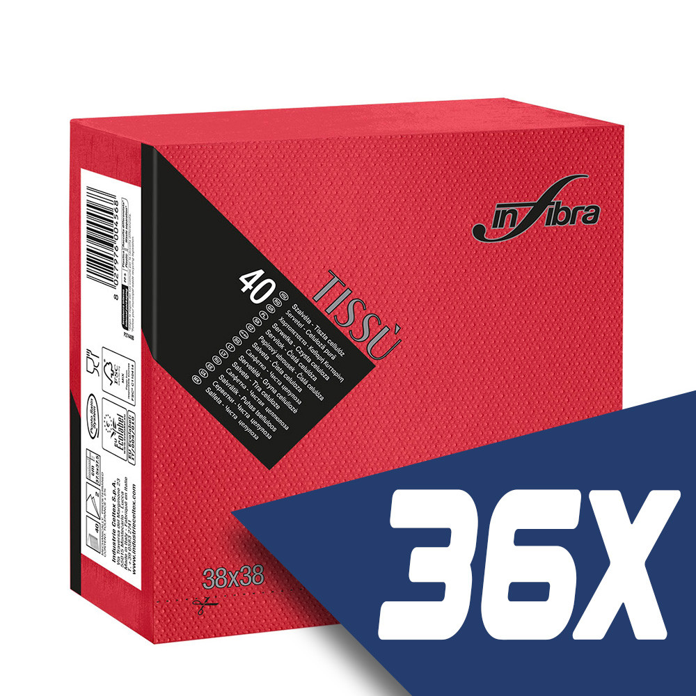 Infibra Szalvéta 38x38cm Piros 2 réteg 40 lap/csomag (36 csomag)