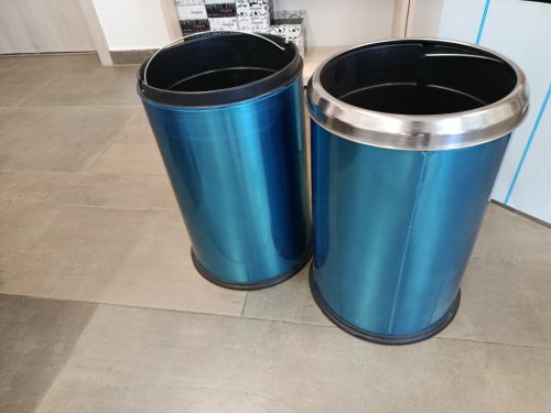 - Lidless, stainless steel trash can, 20 liters