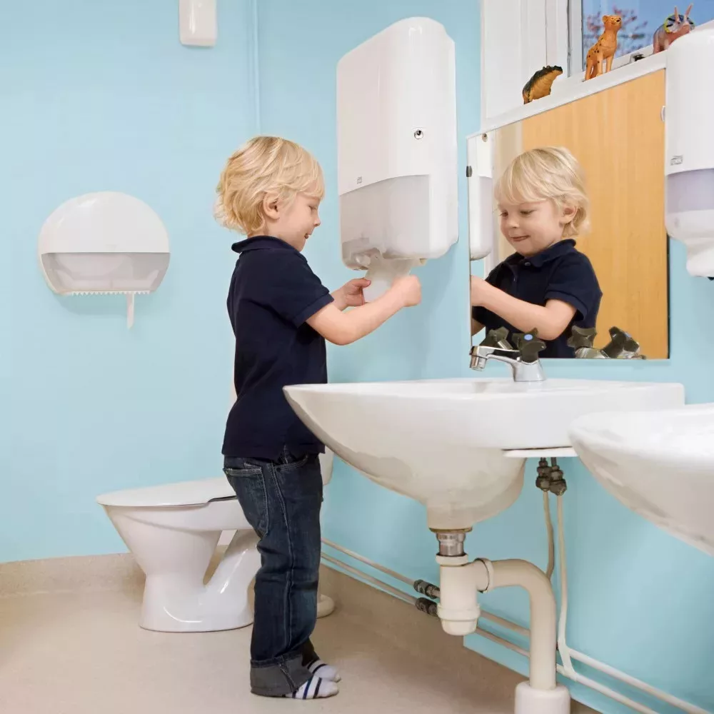 A Tork Elevation adagolók jól használható, modern kialakítása mély benyomást tesz a mosdóhasználókra.