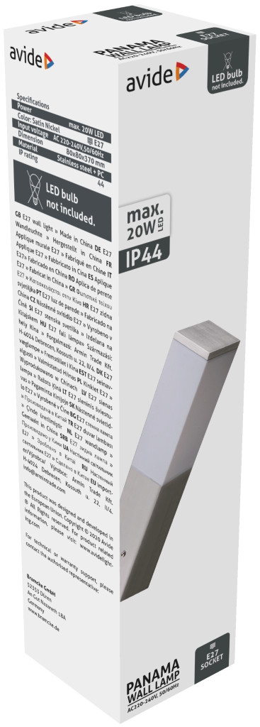 Avide outdoor wall lamp Panama 1xE27 IP44 Satin Nickel