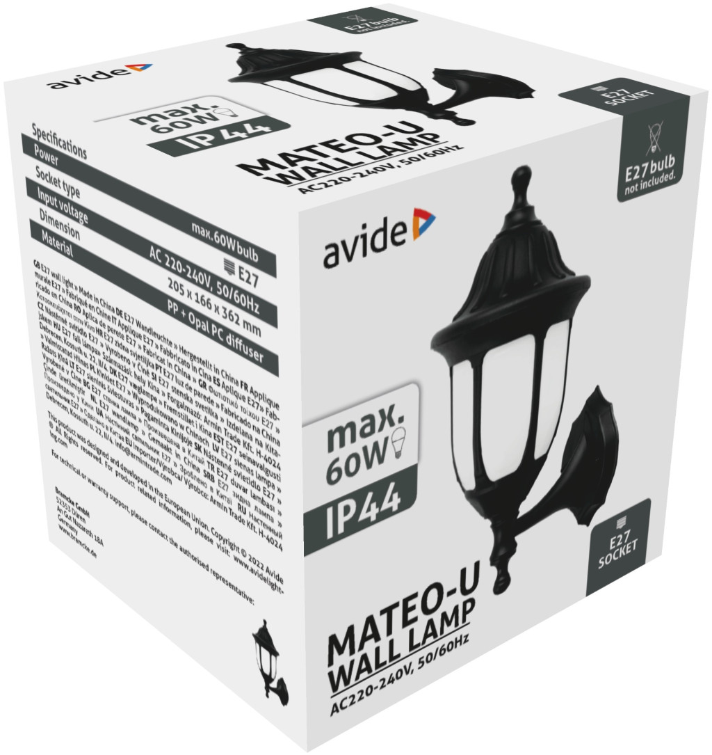 Avide Outdoor Wall Lamp Mateo-U 1xE27 Black IP44