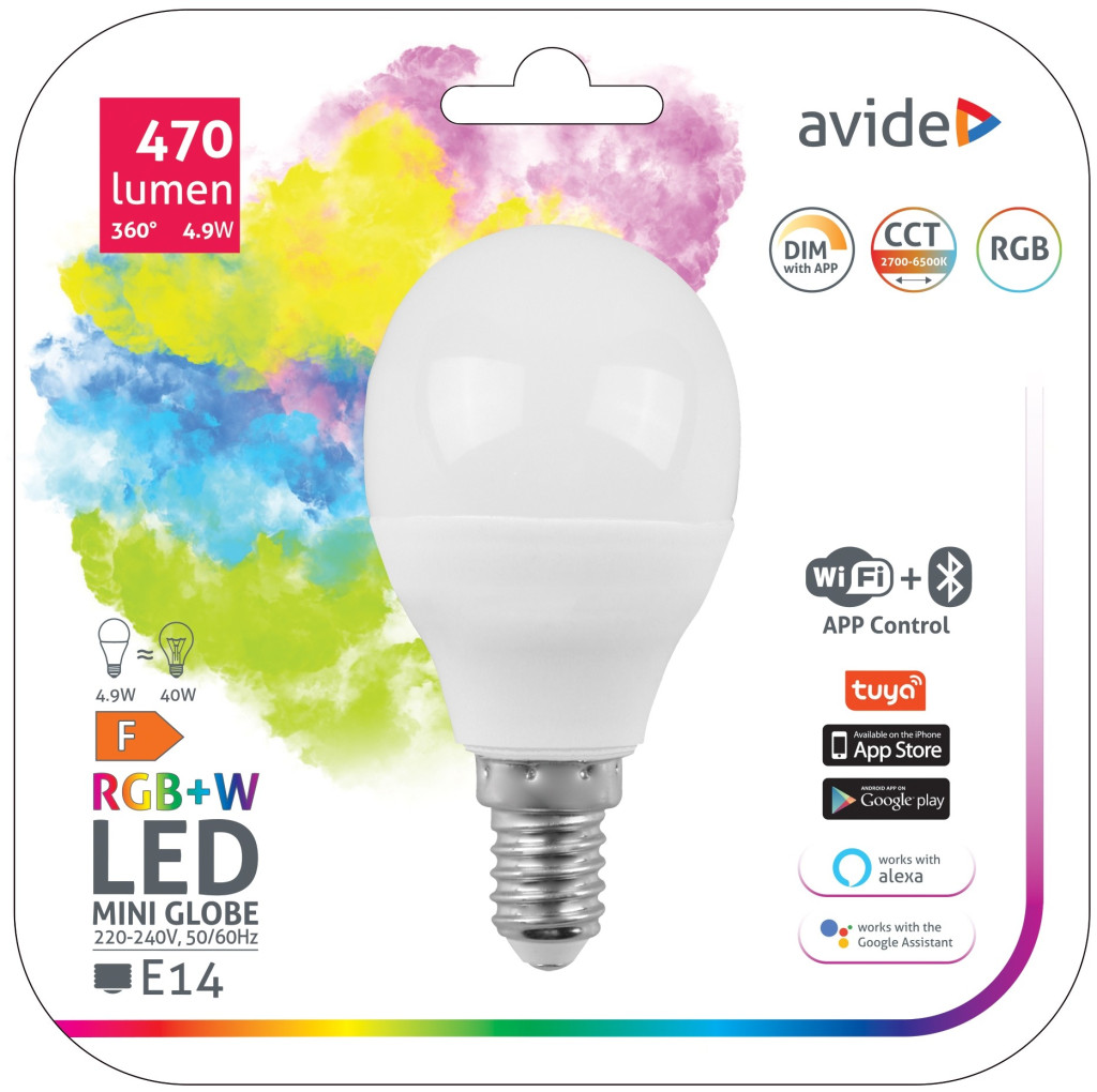 Avide Smart LED Mini Globe 4.9W RGB+W WIFI + BLE APP Control E14