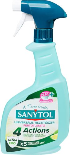 A konyhában és a fürdőszobában a nedvesség és a meleg kedvez a mikrobák szaporodásának. A Sanytol, a klórmentes fertőtlenítés szakértője kifejlesztett egy 4 az 1-ben fertőtlenítő tisztítószert, amely rendkívül erős hatásának köszönhetően fertőtlenít, szagtalanít, zsírtalanít és eltávolítja a vízkövet egyetlen lépésben. A felületeket tisztává és fényessé varázsolja, friss lime illattal. 4 Actions - Mélyreható tisztítás Zsíroldás: 5x nagyobb hatékonyság?1? Vízkő ellen: 3-szor nagyobb hatékonyság?1? Penészgomba megelőzés: 7 napos védelem Szagtalanítás: Megszünteti a kellemetlen szagokat Fényessé teszi a felületeket Kíméletes a felületekkel Bőrgyógyászatilag tesztelt *A termék hármas hatású: Baktericid az EN1276 és EN16615 szabvány szerint Pseudomonas aeruginosa, Staphylococcus aureus, Enterococcus hirae, Escherichia coli, Listeria monocytogenes, Salmonella enterica és Campylobacter jejuni ellen. Gombaölő az EN1650 és EN13697 szabvány szerint Aspergillus brasiliensis, Trichosporon cutaneum ellen és élesztőölő az EN1650 és EN1615 szabvány szerint Candida albicans ellen. Az EN14476 és EN16777 szabványok szerint vírusölő a Vaccinia vírus, az influenza H1N1 vírus és a 229E koronavírus ellen. ?1?az univerzális formulához képest