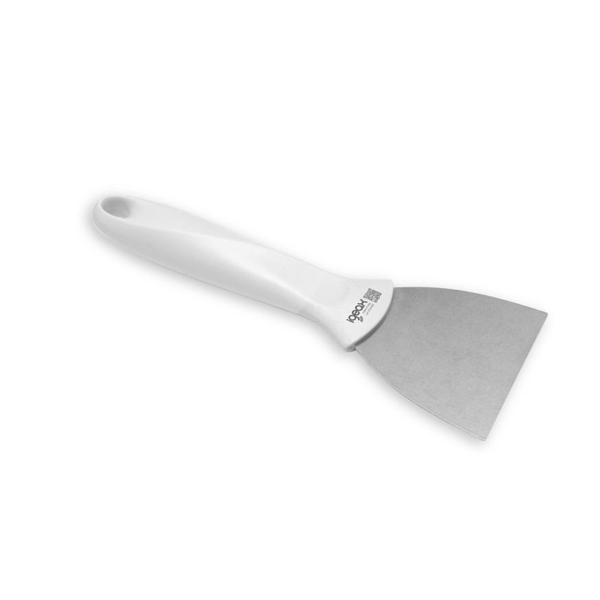 Strugač s oštricom od nehrđajućeg čelika, trenutno uklanja naslage i prljavštinu nataloženu na površinama. Nezaobilazan partner u obradi hrane i idealan za rezanje tjestenine. Opremljen je rupom za zaštitu od kapanja za praktično skladištenje. Inovativno označavanje jamči sljedivost duž cijelog opskrbnog lanca.