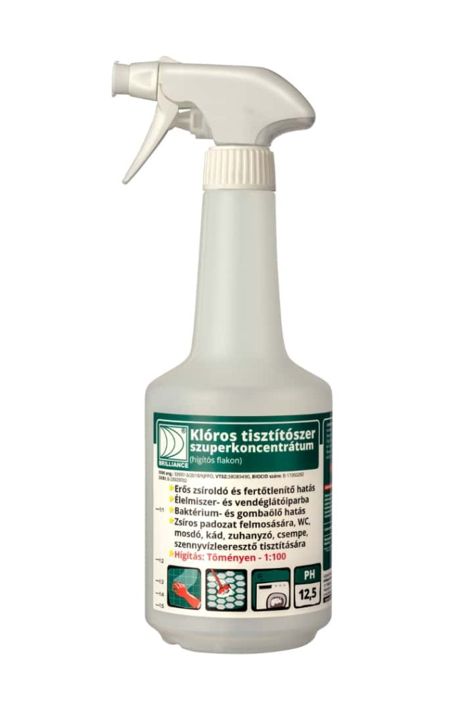 Klóros tisztítószer szuperkoncentrátum hígító flakon szórófejjel 750ml (üres)