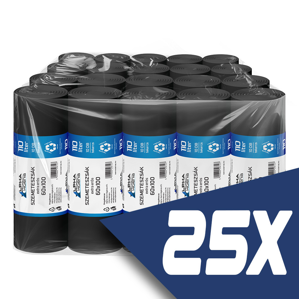 Szemeteszsák fekete 60x100 22mikron 110L 10db/tekercs (25 tekercs)