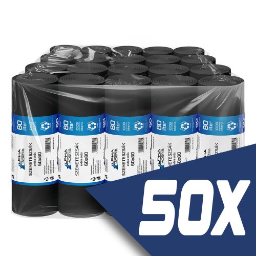 Szemeteszsák fekete 60x80 20mikron 80L 10db/tekercs (50 tekercs)