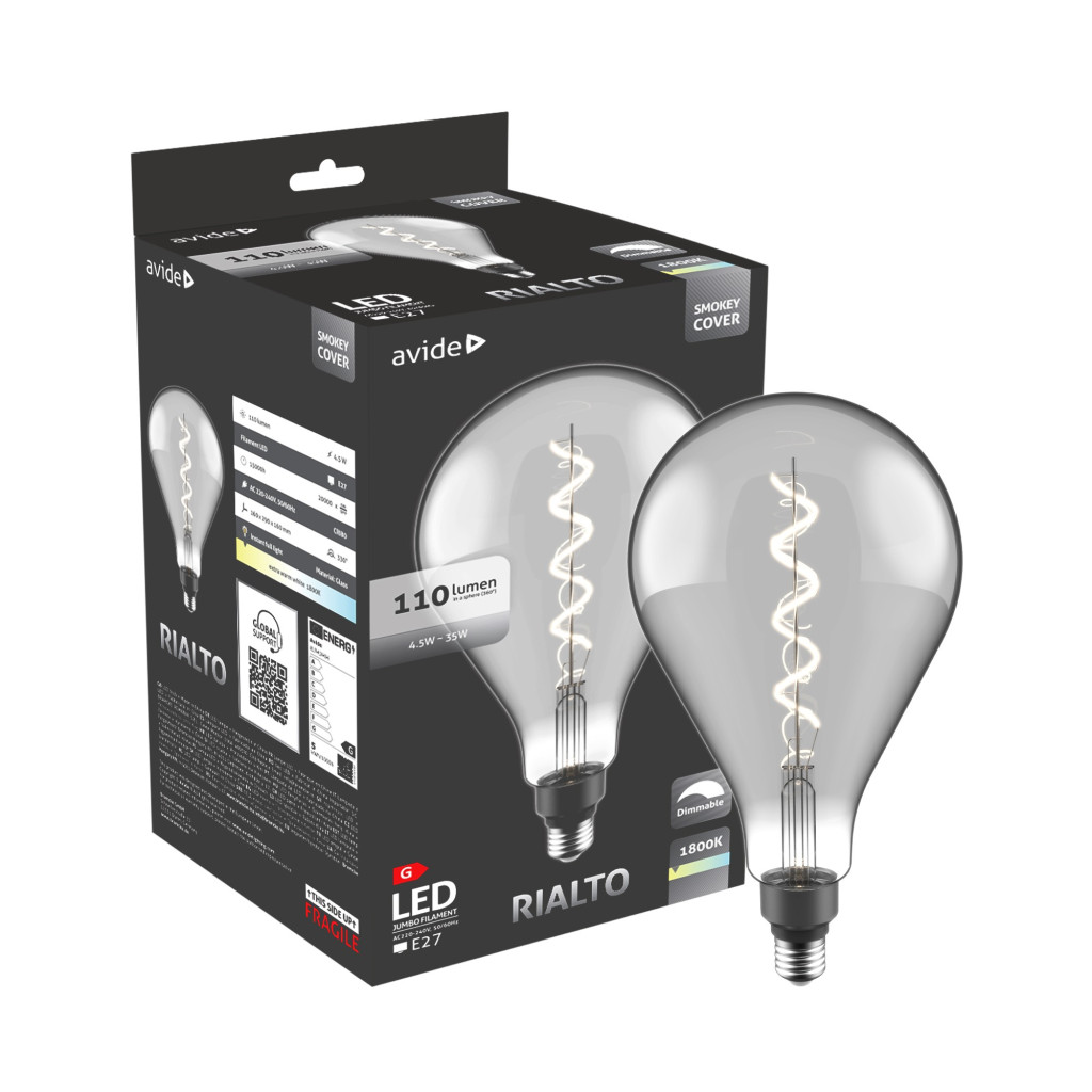 Avide LED Jumbo Filament Rialto Smokey 4.5W E27 2200K Fényerőszabályzós