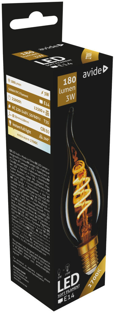 Avide LED Soft Filament Candle Flame 3W E14 EW 2700K